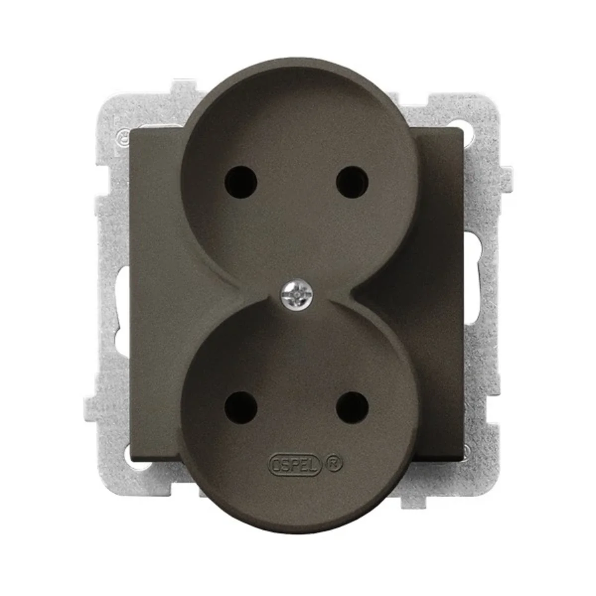 Gniazdo elektryczne podwójne, bez uziemienia, do wyposażenia w ramkę.