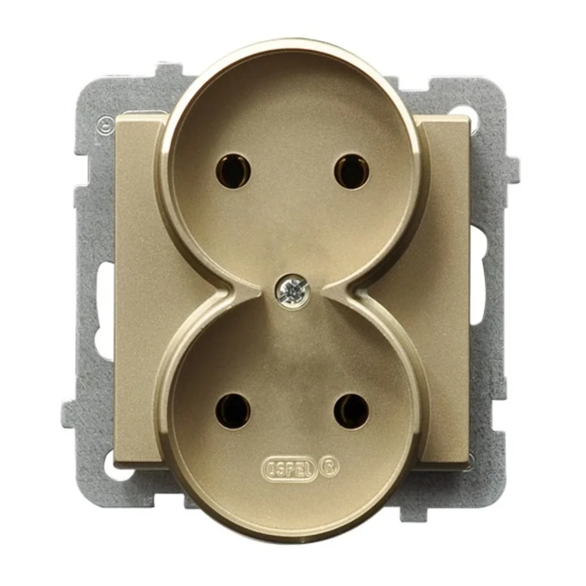 Gniazdo elektryczne podwójne, bez uziemienia, do wyposażenia w ramkę.