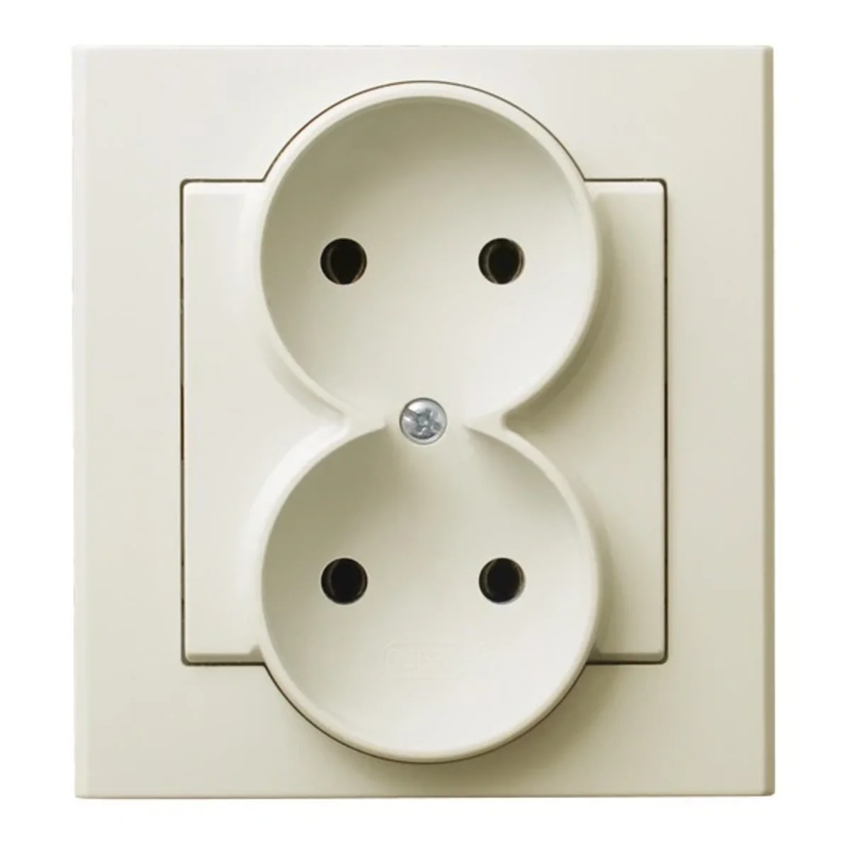 Gniazdo elektryczne podwójne, bez uziemienia, wyposażone w ramkę.