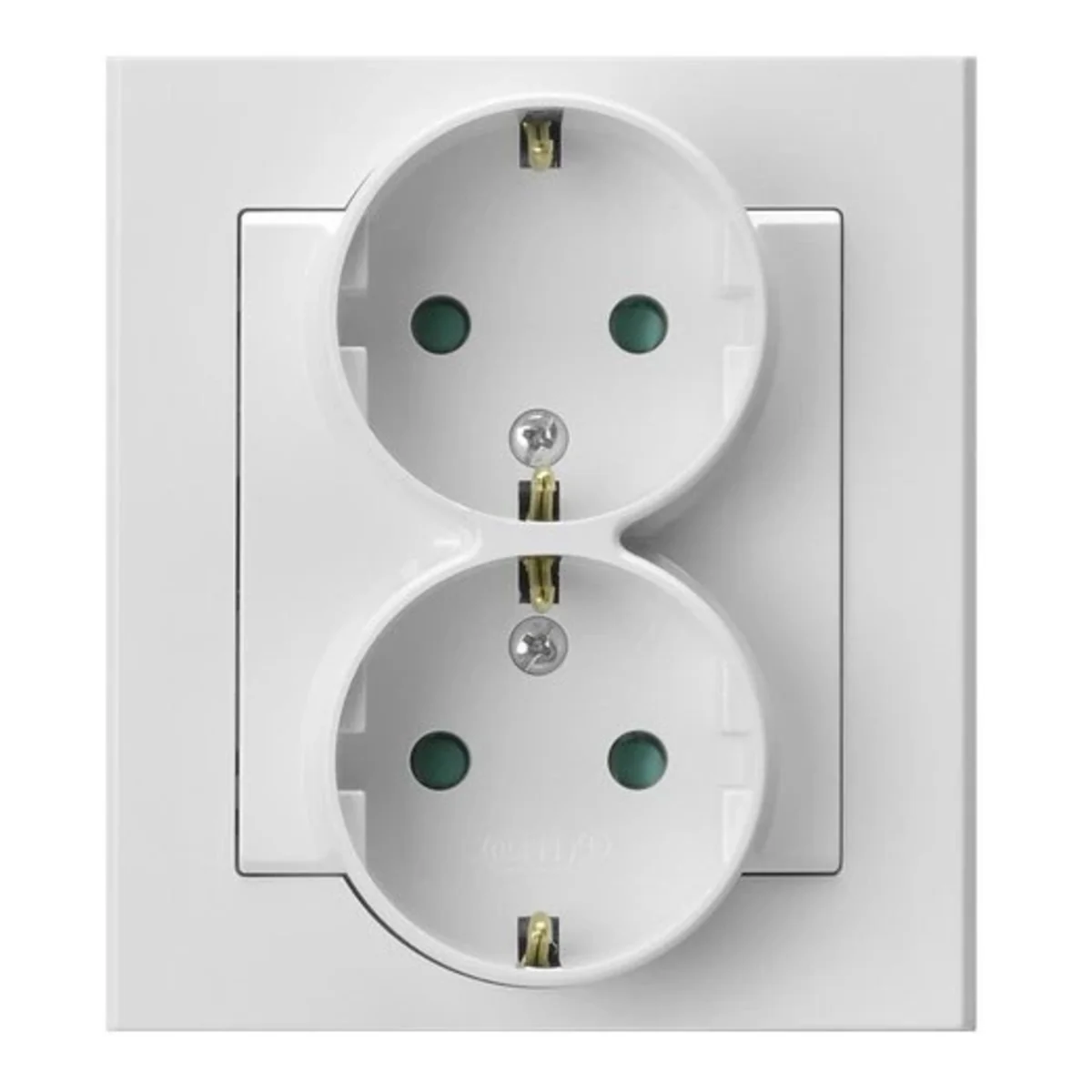 Gniazdo elektryczne podwójne, z uziemieniem schuko, z przesłonami torów prądowych.