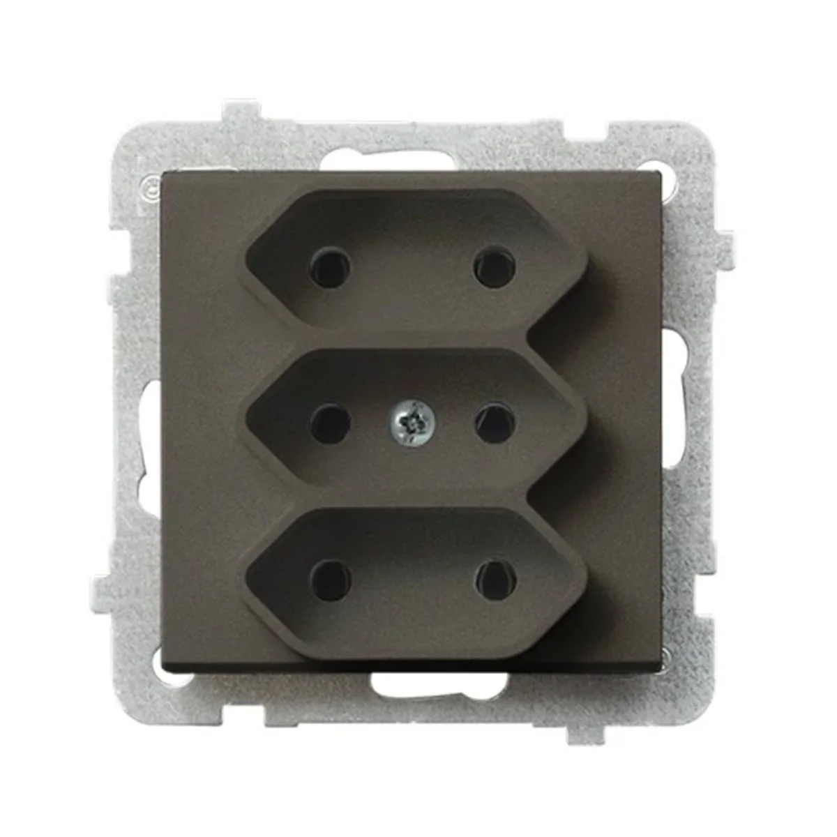 Gniazdo elektryczne na trzy płaskie wtyczki. Do wyposażenia w ramkę.