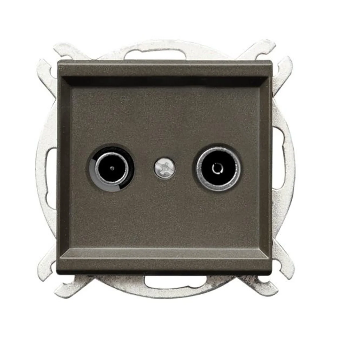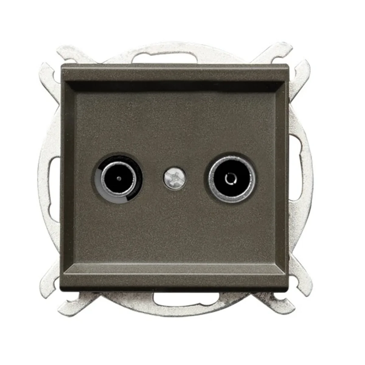 Gniazdo antenowe RTV przelotowe. Jest przeznaczone do instalacji szeregowej, w której jeden kabel przechodzi przez różne odbiorniki. Do wyposażenia w ramkę.