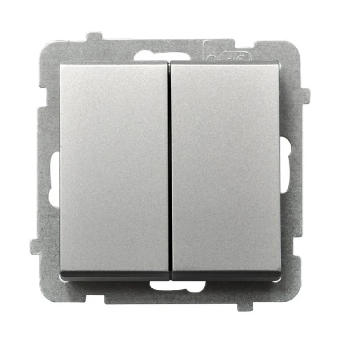 Łącznik zwierny podwójny z serii Sonata, od producenta Ospel. Numer katalogowy produktu to ŁP-17R/m/38. W kolorze srebro mat.