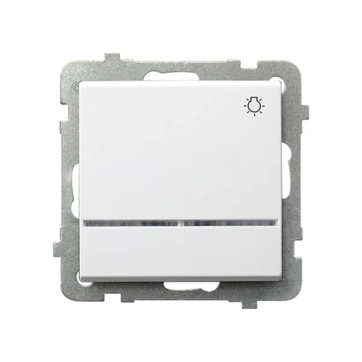 Łącznik zwierny "światło" z podświetleniem, z serii Sonata, od producenta Ospel. Numer katalogowy produktu to ŁP-5RS/M/00. W kolorze białym.