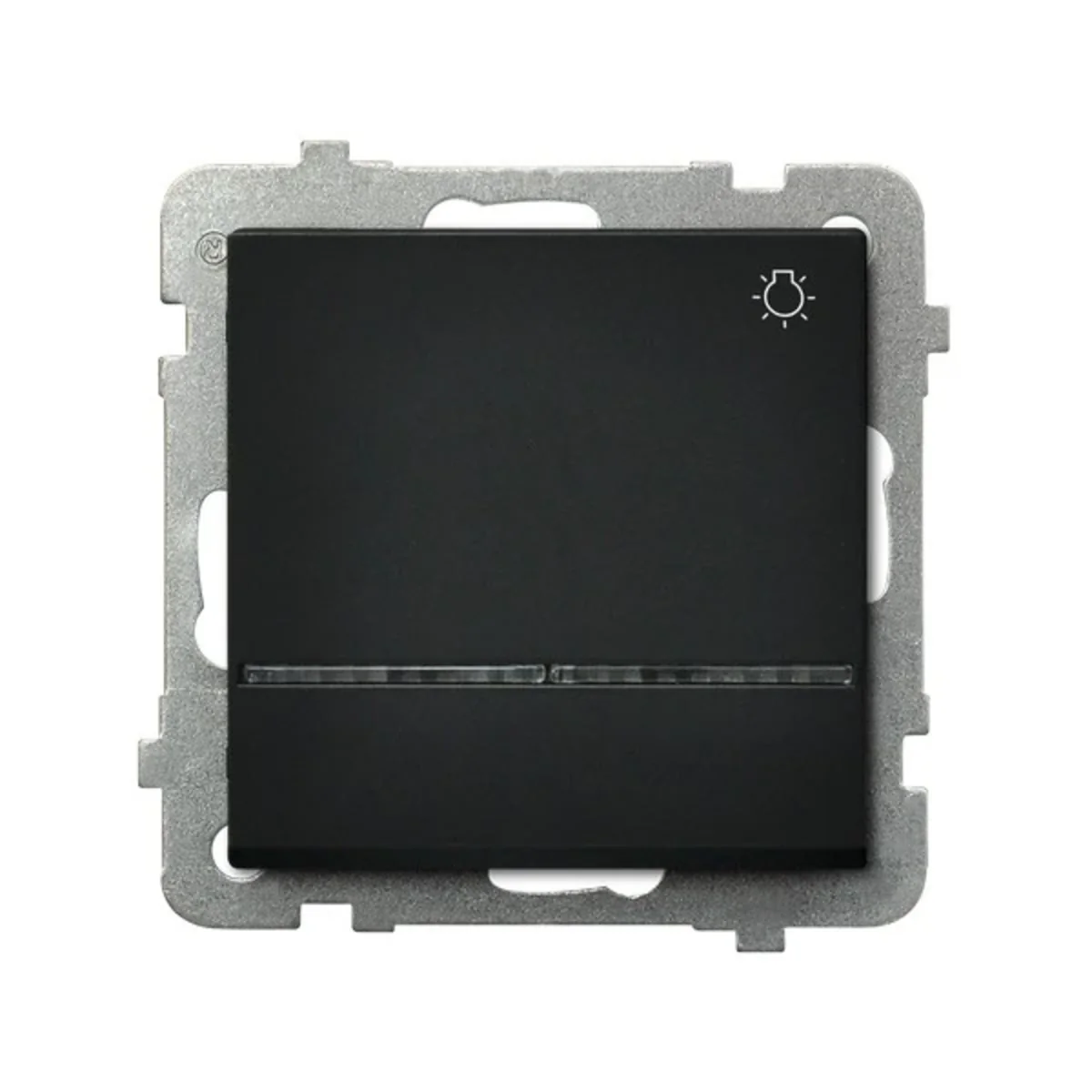 Łącznik zwierny "światło" z podświetleniem, z serii Sonata, od producenta Ospel. Numer katalogowy produktu to ŁP-5RS/M/33. W kolorze czarny metalik.