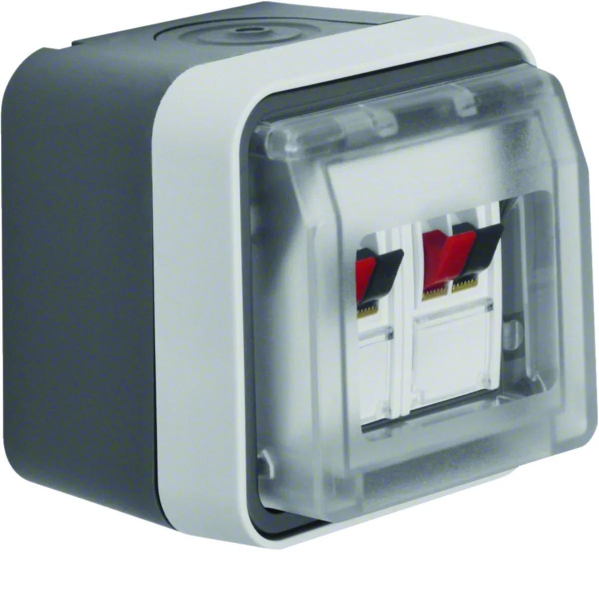 Gniazdo głośnikowe natynkowe z serii W.1, od producenta Berker. Numer katalogowy produktu to 11963515.