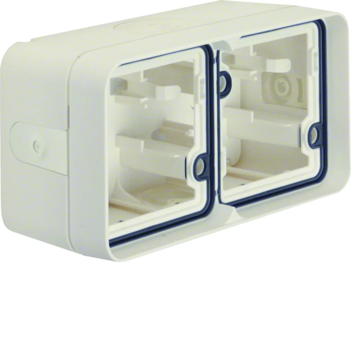 Puszka natynkowa 2-krotna, z serii Berker W.1, który łączy funkcjonalność zewnętrznej instalacji elektrycznej z estetycznym wyglądem.