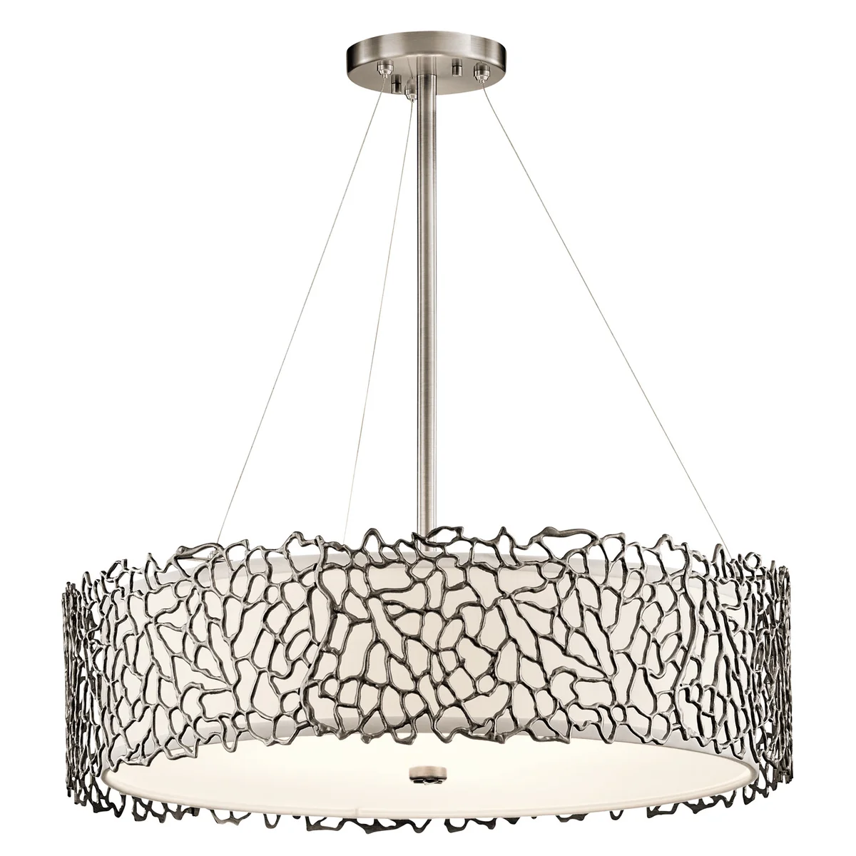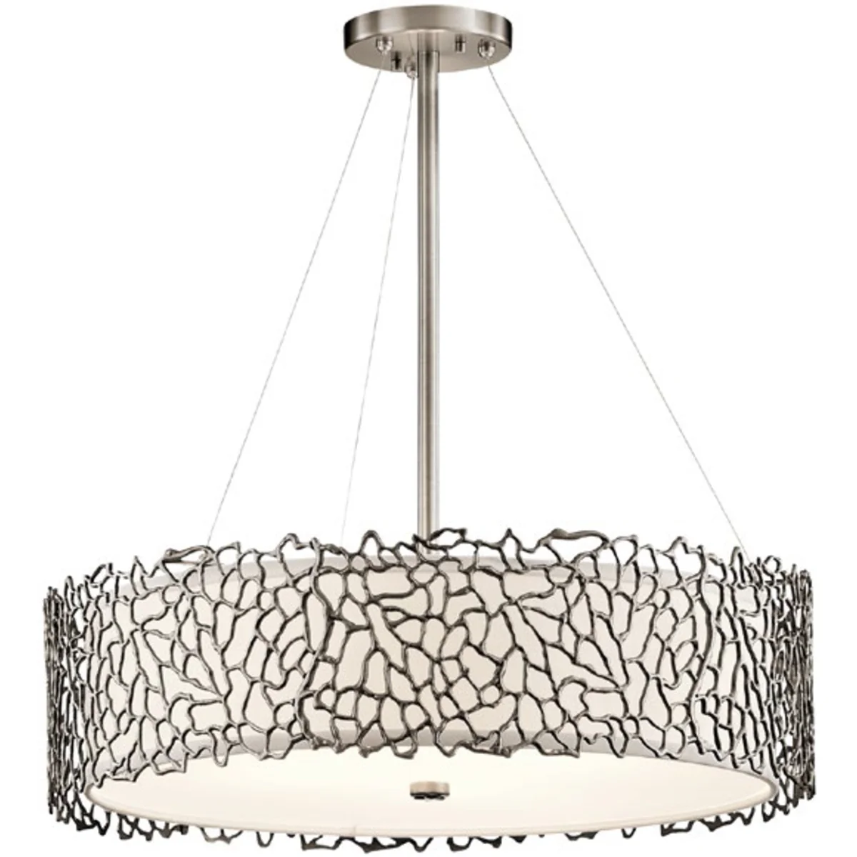 Zainspirowana naturalnym koralem kolekcja Silver Coral posiada bardzo współczesny, a zarazem subtelny i organiczny design. Lniane abażury i dyfuzory z trawionego szkła pięknie zmiękczają światło, a zewnętrzny koralowy wzór urzeka swoją swobodną elegancją.