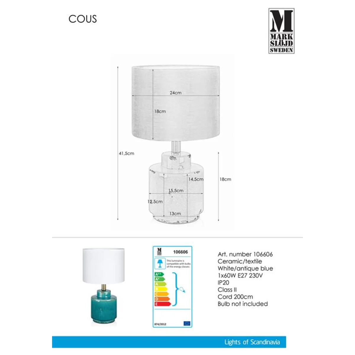COUS Lampa stołowa antyczny niebieski 106606