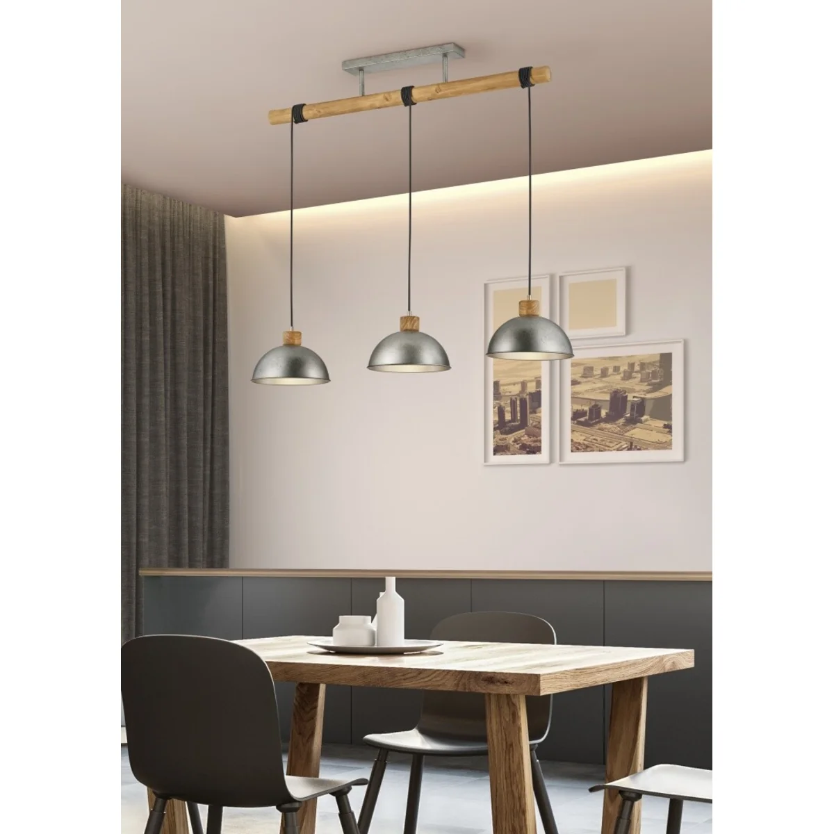 DELHI Lampa wisząca listwa potrójna nikiel antyczny 303400367