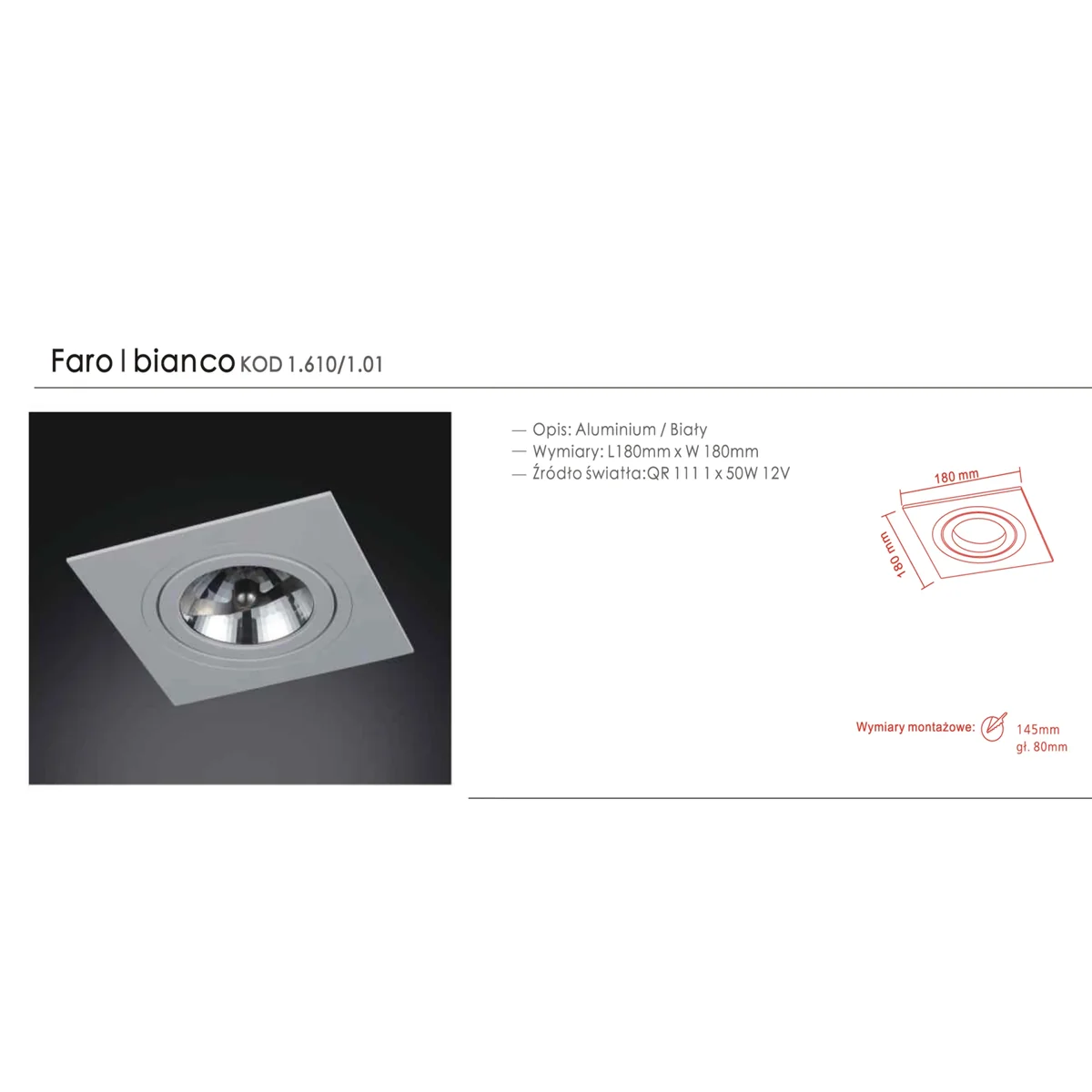 Faro I Bianco Lampa sufitowa wpuszczana biała