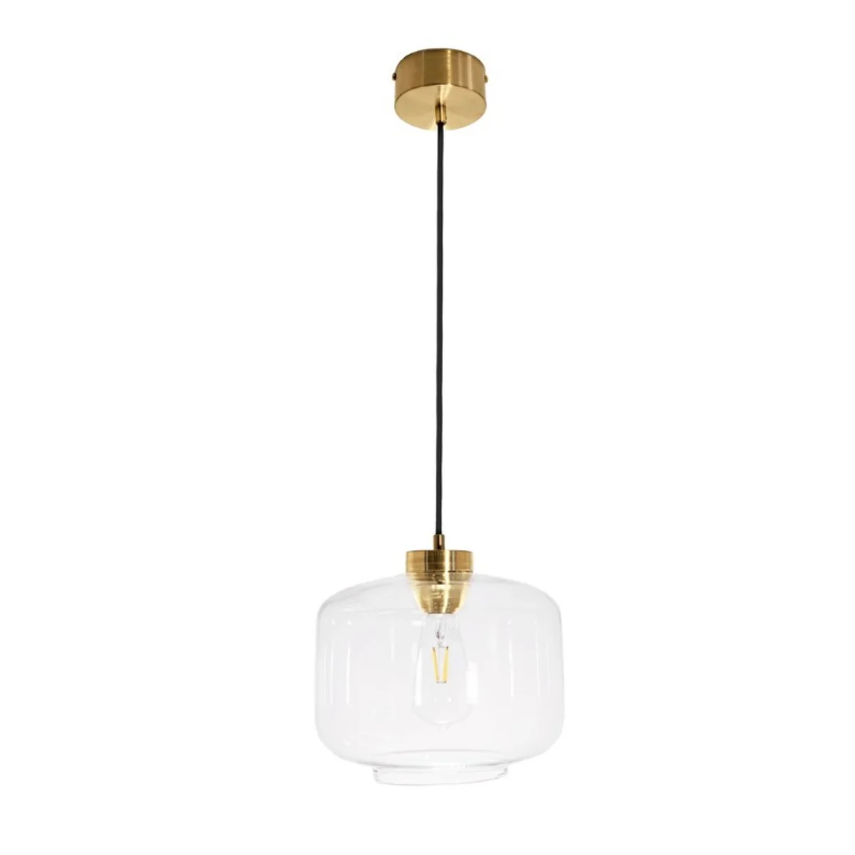 Oprawa ma oryginalny szklanym klosz wykonany ze szkła o ciekawym kształcie, który przyciąga uwagę i czyni z tej lampy nietuzinkowy element dekoracyjny wnętrza.