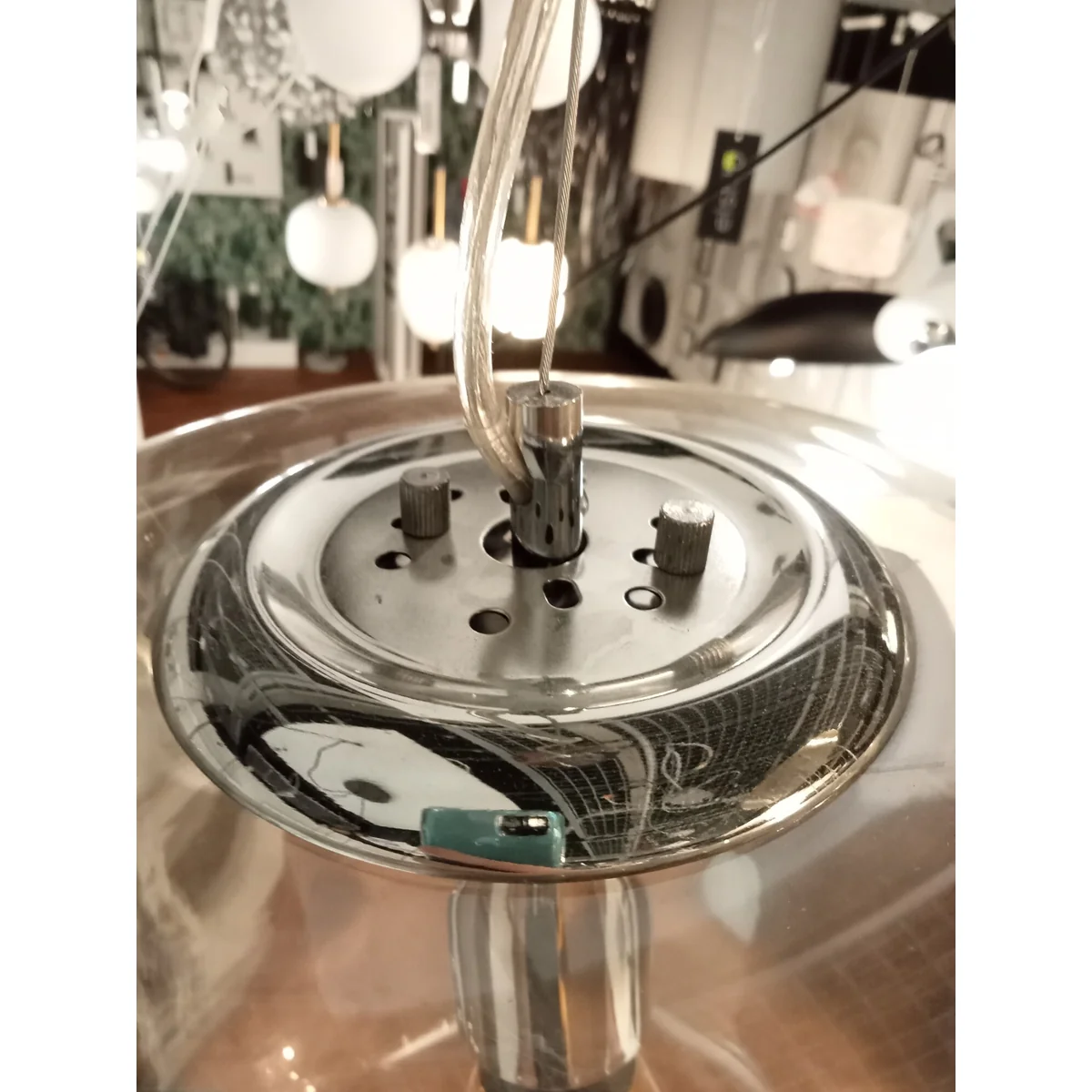 Lampa posida delikatne ryski na kloszu - widoczne z bliska.