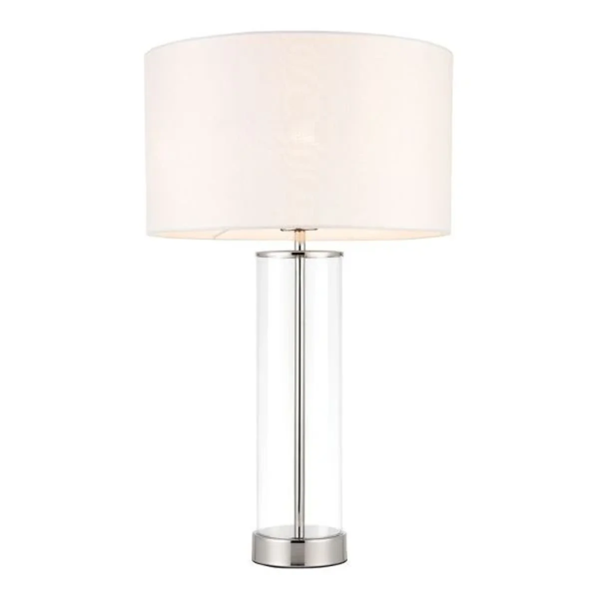 LESSINA - szklana lampa stołowa z białym abażurem.