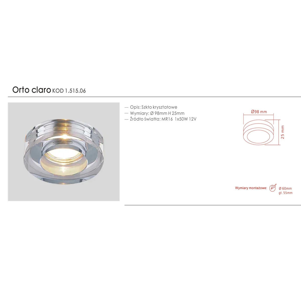 Orto Claro Lampa sufitowa wpuszczana chrom ORTO CLARO