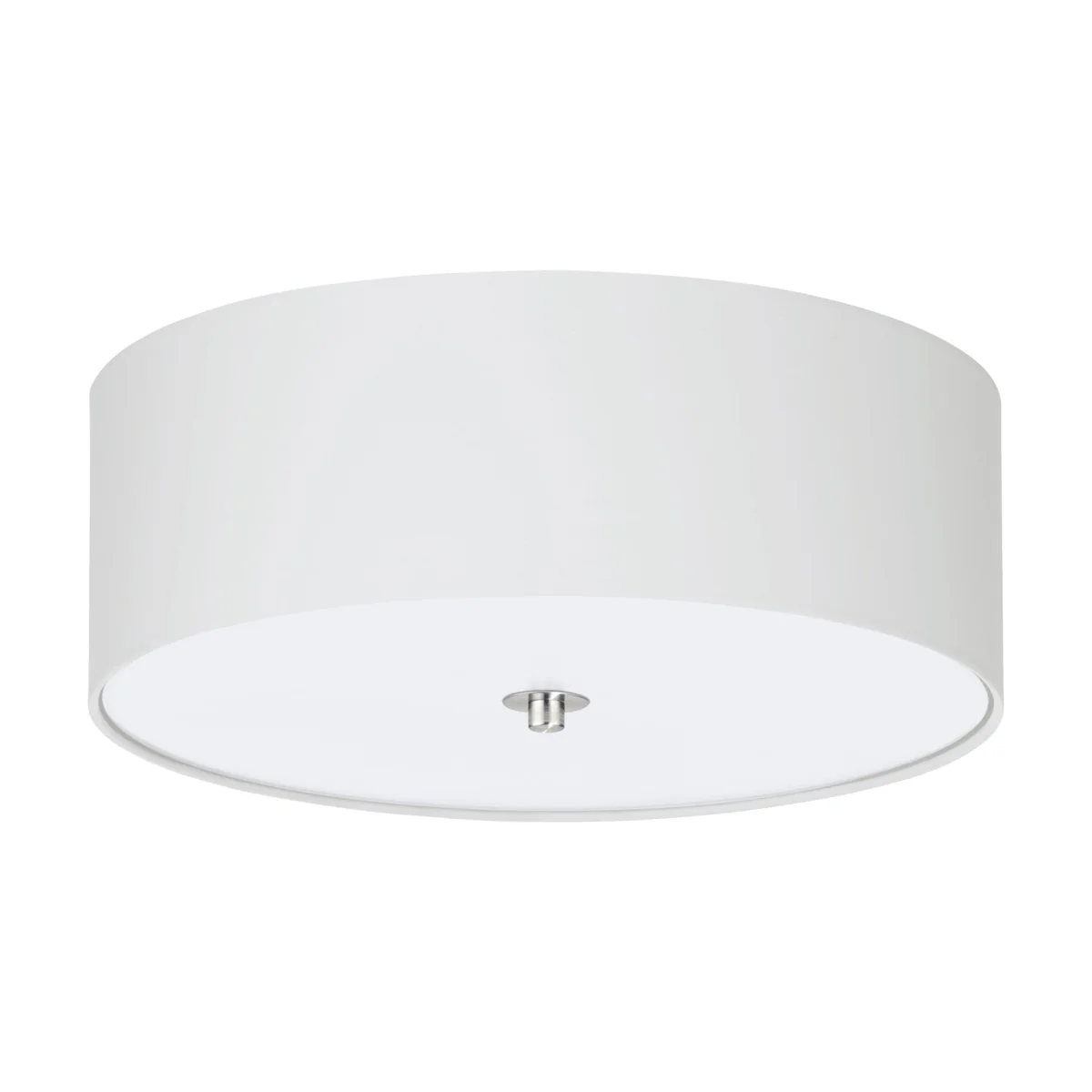 Ta oprawa sufitowa z serii PASTERI wykonana jest ze stali niklowo-satynowej, tkaniny w kolorze białym i szkła.