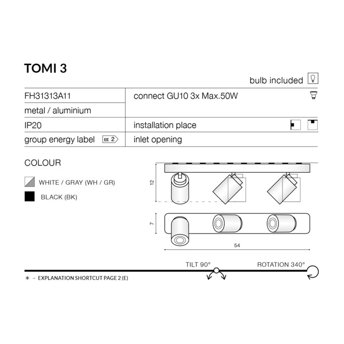 TOMI 3 Lampa ścienno-sufitowa czarna