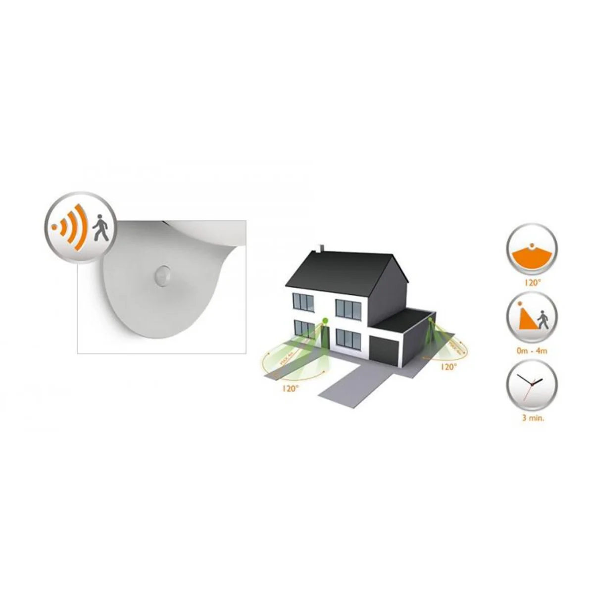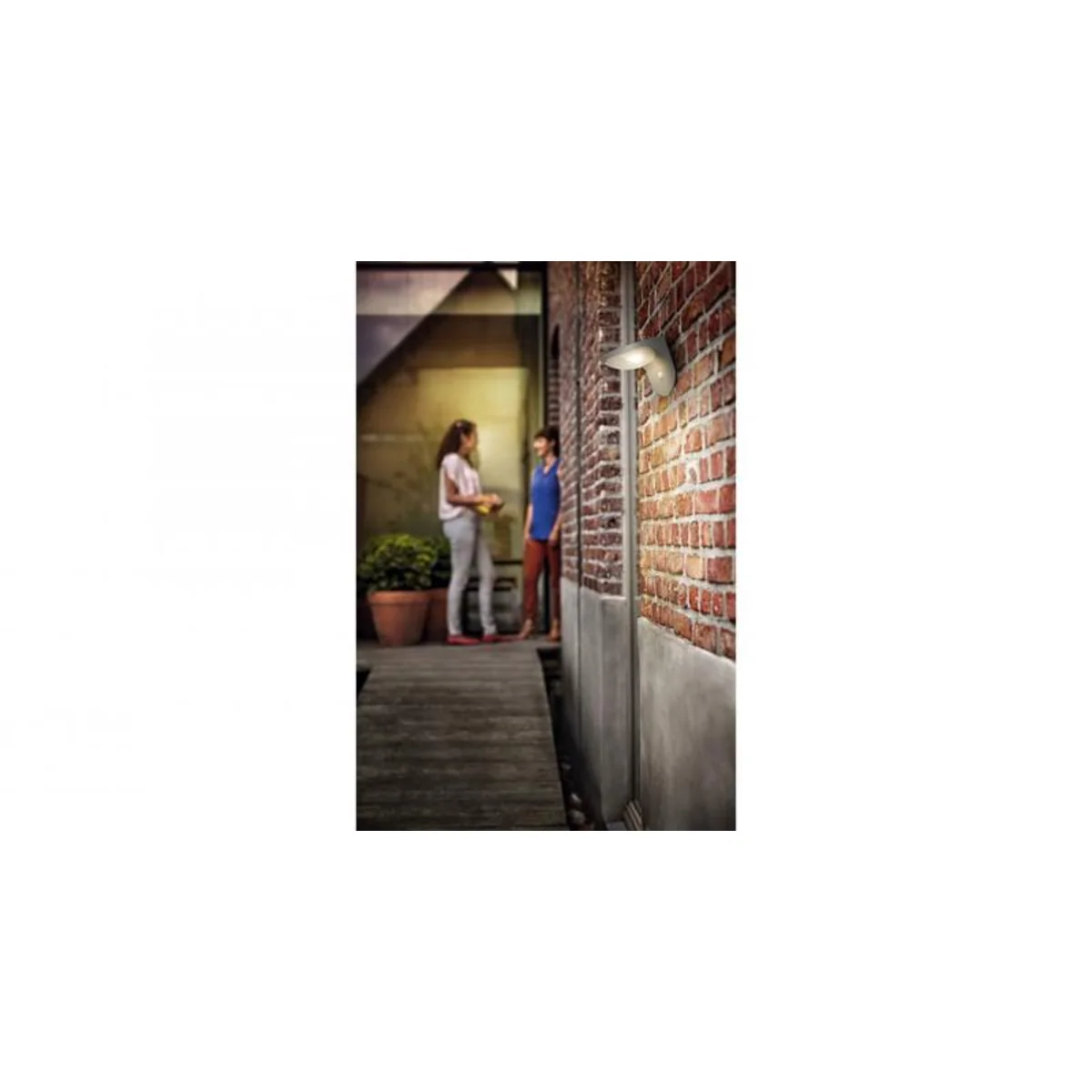 Kinkiet Dusk wykorzystuje wydajny panel słoneczny i oszczędne diody LED pozwalające dłużej cieszyć się blaskiem światła. Wyposażona w czujnik ruchu oprawa o pomysłowej konstrukcji ma subtelny styl i emituje piękne światło.