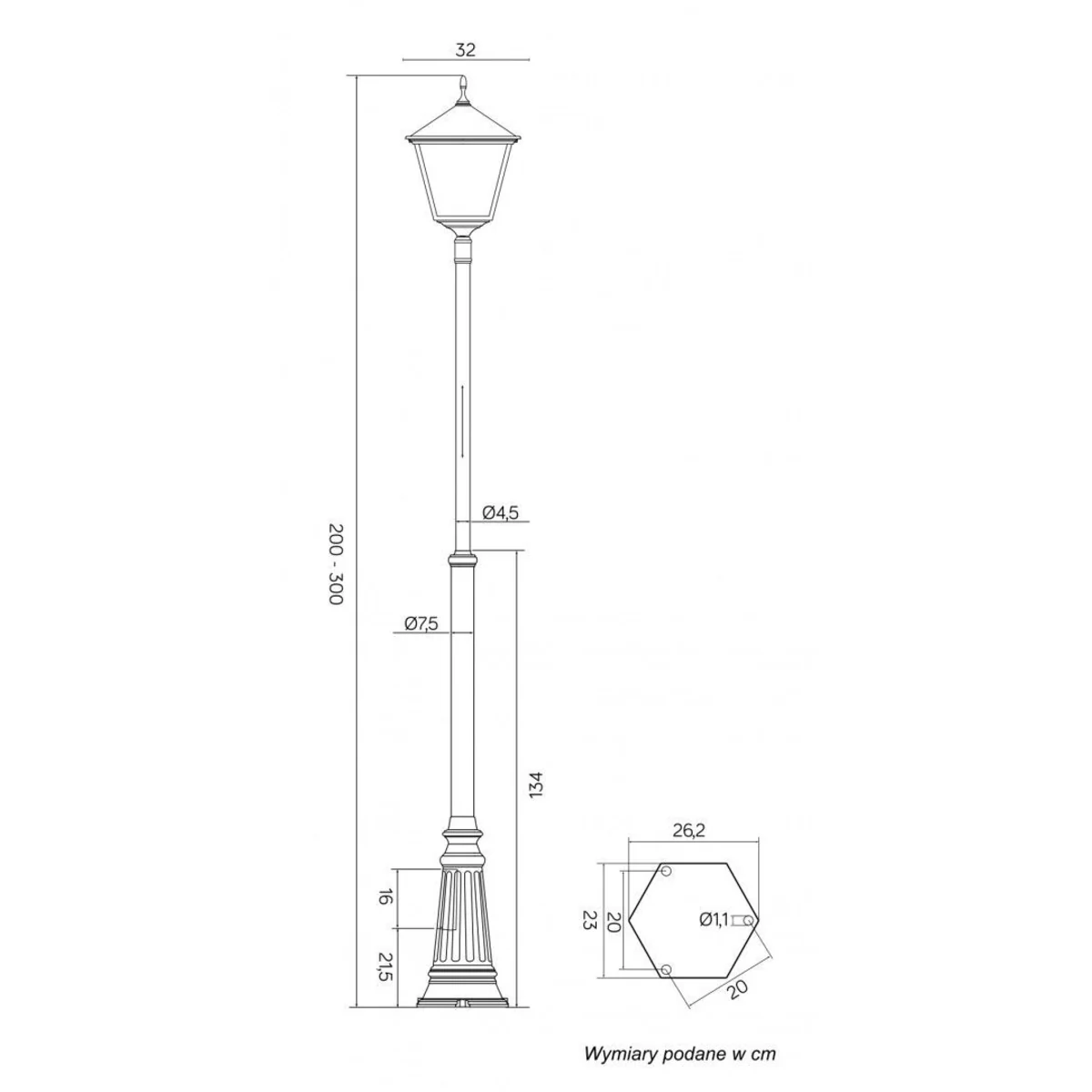 Lampa masztowa to stylowa oprawa oświetleniowa, wykonana z aluminium. Atrakcyjna, kwadratowa forma, uzupełniona dekoracyjnym "lodowym" szkłem. Idealnie wkomponuje się w otoczenie ogrodu, parku czy ulic. Wysokość masztu regulowana w przedziale 200-300 cm. Do oprawy nie dołączamy śrub montażowych.