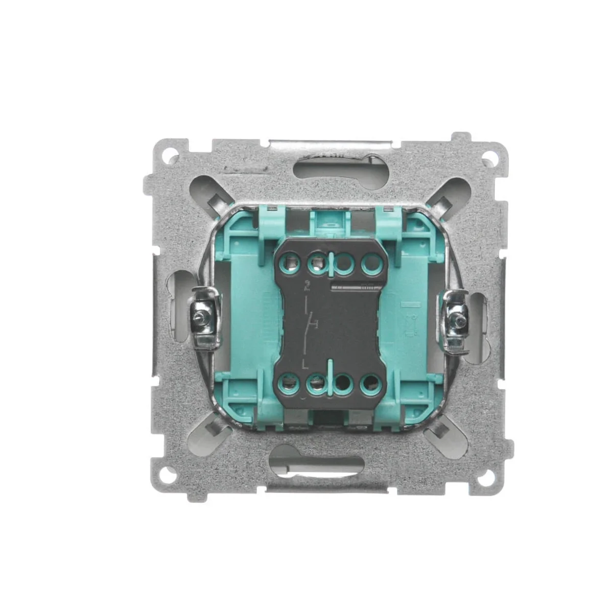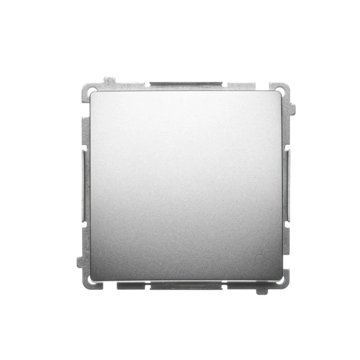 Przycisk "światło" z serii Simon Basic, od producenta Kontakt Simon. Numer katalogowy produktu to BMS1A.01/29. W kolorze satynowym, metalizowanym.