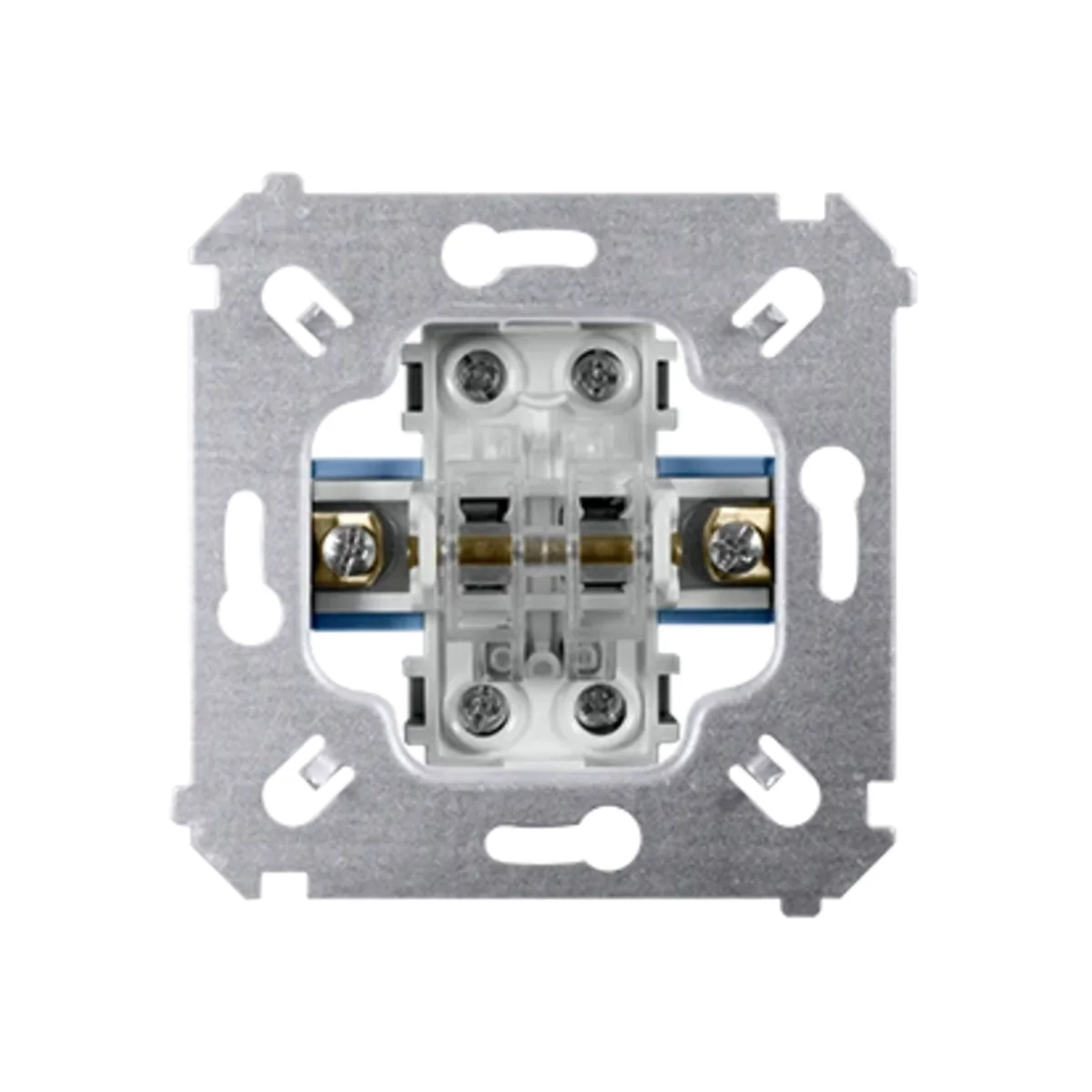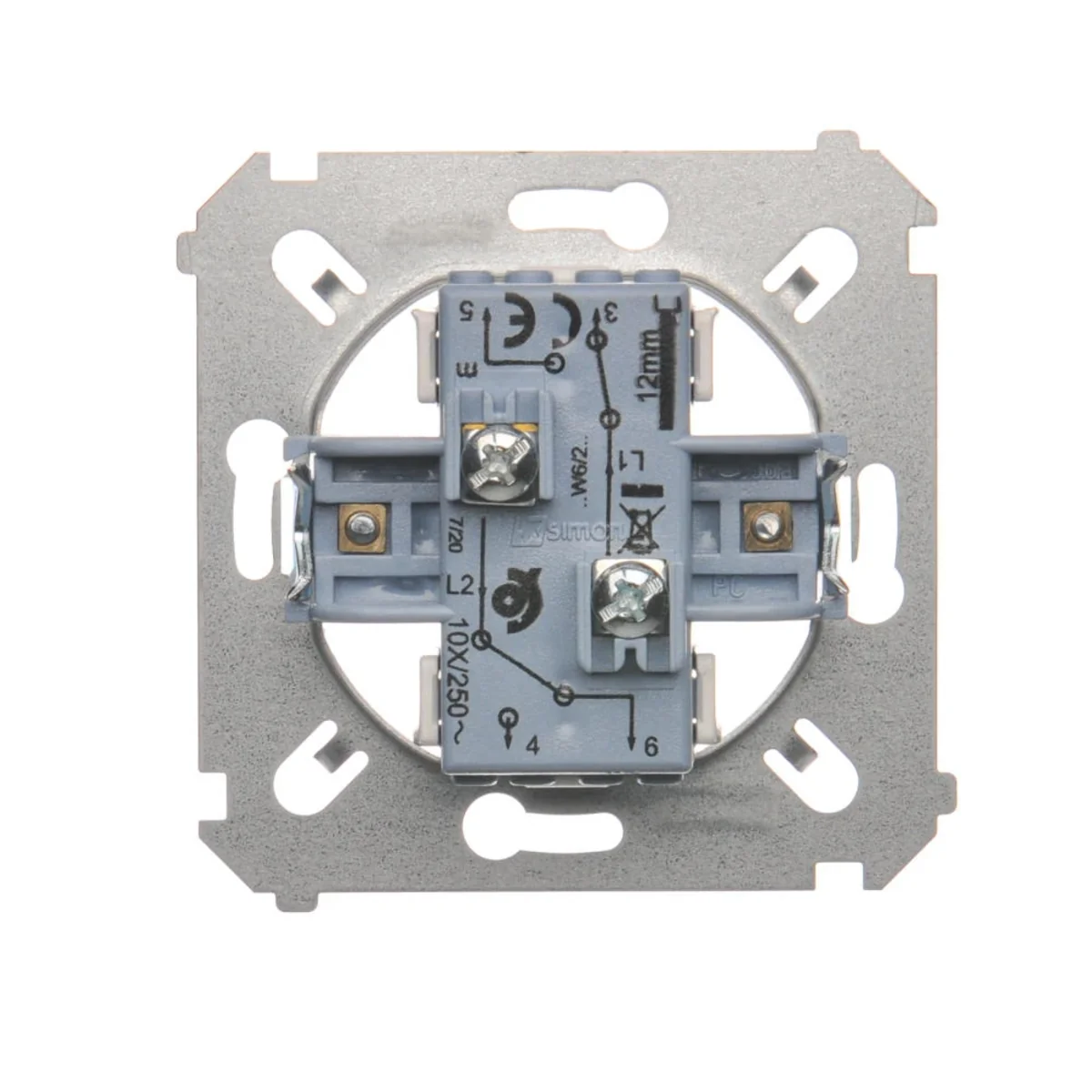 Mechanizm łącznika schodowego podwójnego z serii Simon 54, od producenta Kontakt Simon. Numer katalogowy produktu to SW6/2M.