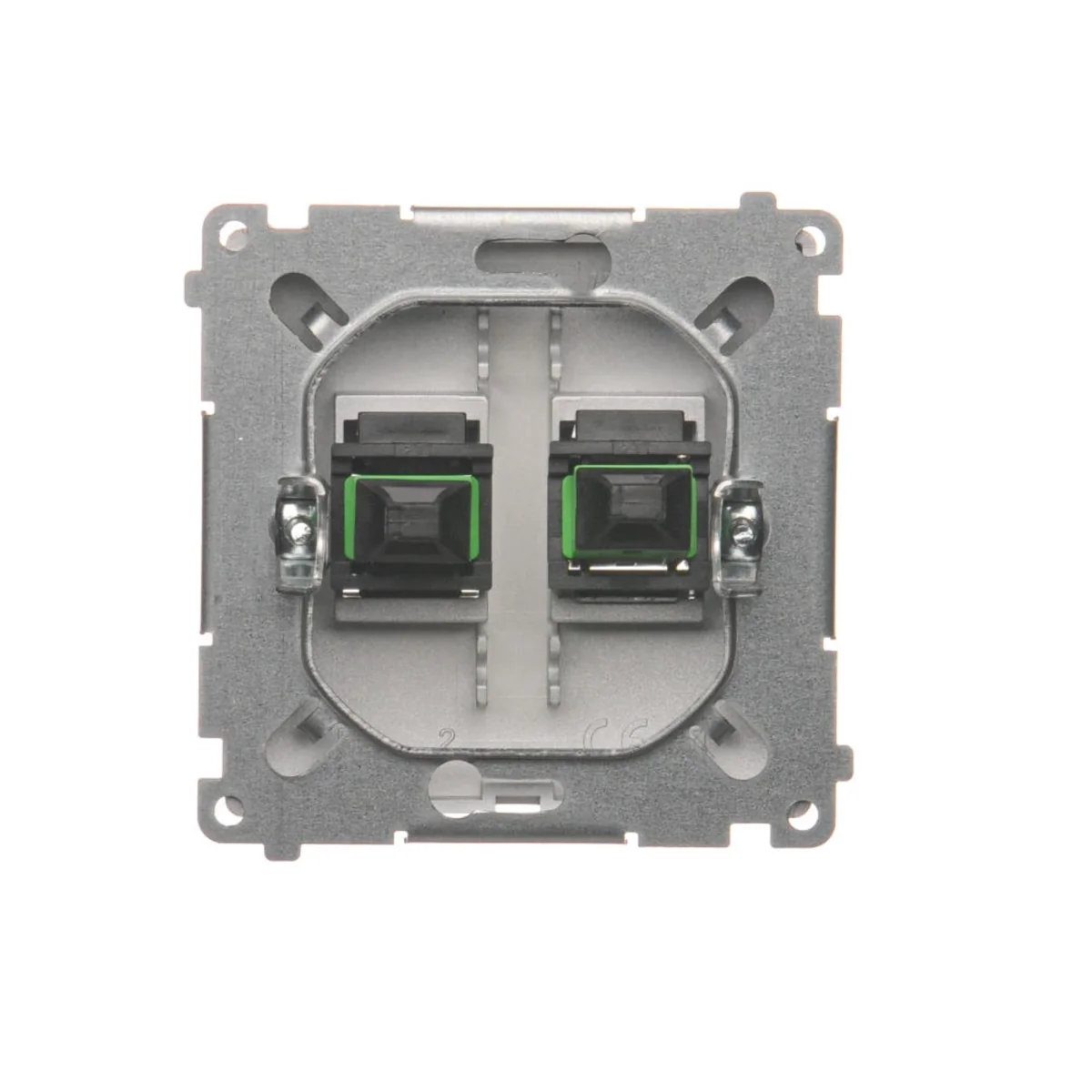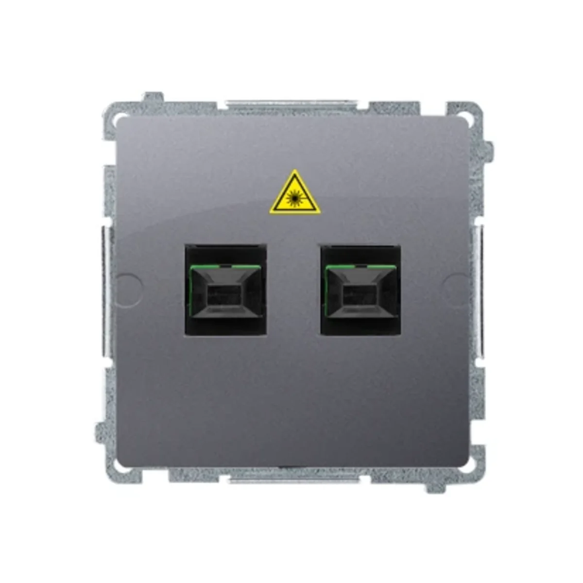 Gniazdo światłowodowe (optyczne) podwójne SC/APC. Z symbolem "laser".