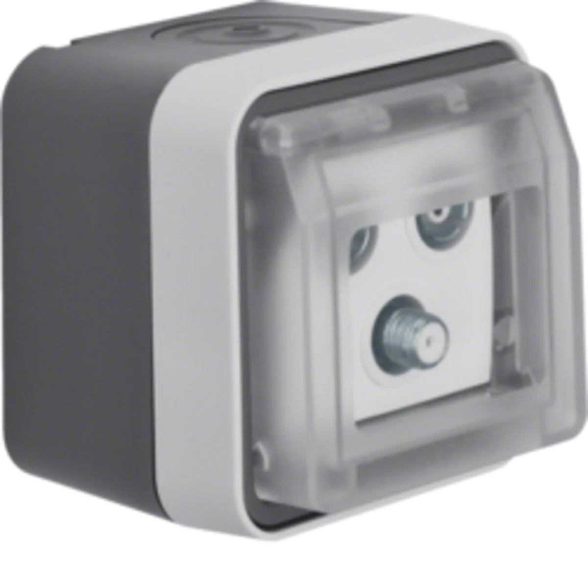 Berker W.1 to seria wodoodpornego osprzętu elektroinstalacyjnego, która wyróżnia się innowacyjnym wyglądem. Gniazdo antenowe natynkowe posiada wszystkie cechy tej wyjątkowej serii.