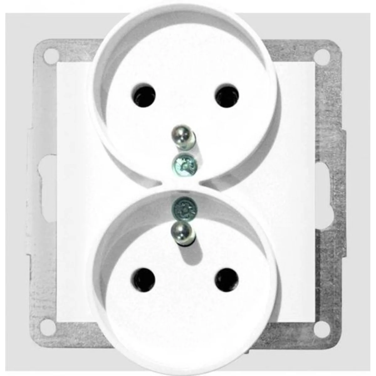 Gniazdo podwójne z uziemieniem z zaciskami śrubowymi, do ramek jedno lub wielokrotnych. 16A, 250V~.