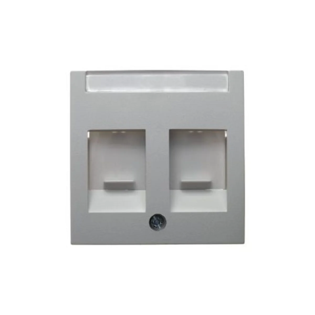 Płytka czołowa podwójna z zasuwami chroniącymi przed kurzem z polem opisowym, z serii Berker B.Kwadrat/B.3/B.7. Numer katalogowy produktu to 11811404.