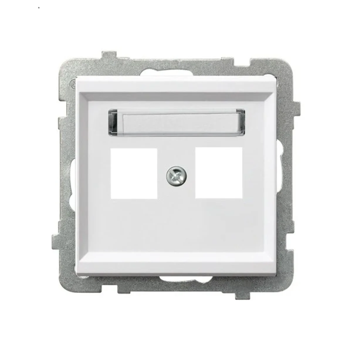 Obudowa gniazda podwójnego typu Keystone prosta z serii Sonata, od producenta Ospel. Numer katalogowy produktu to GPK-2R/P/00.
