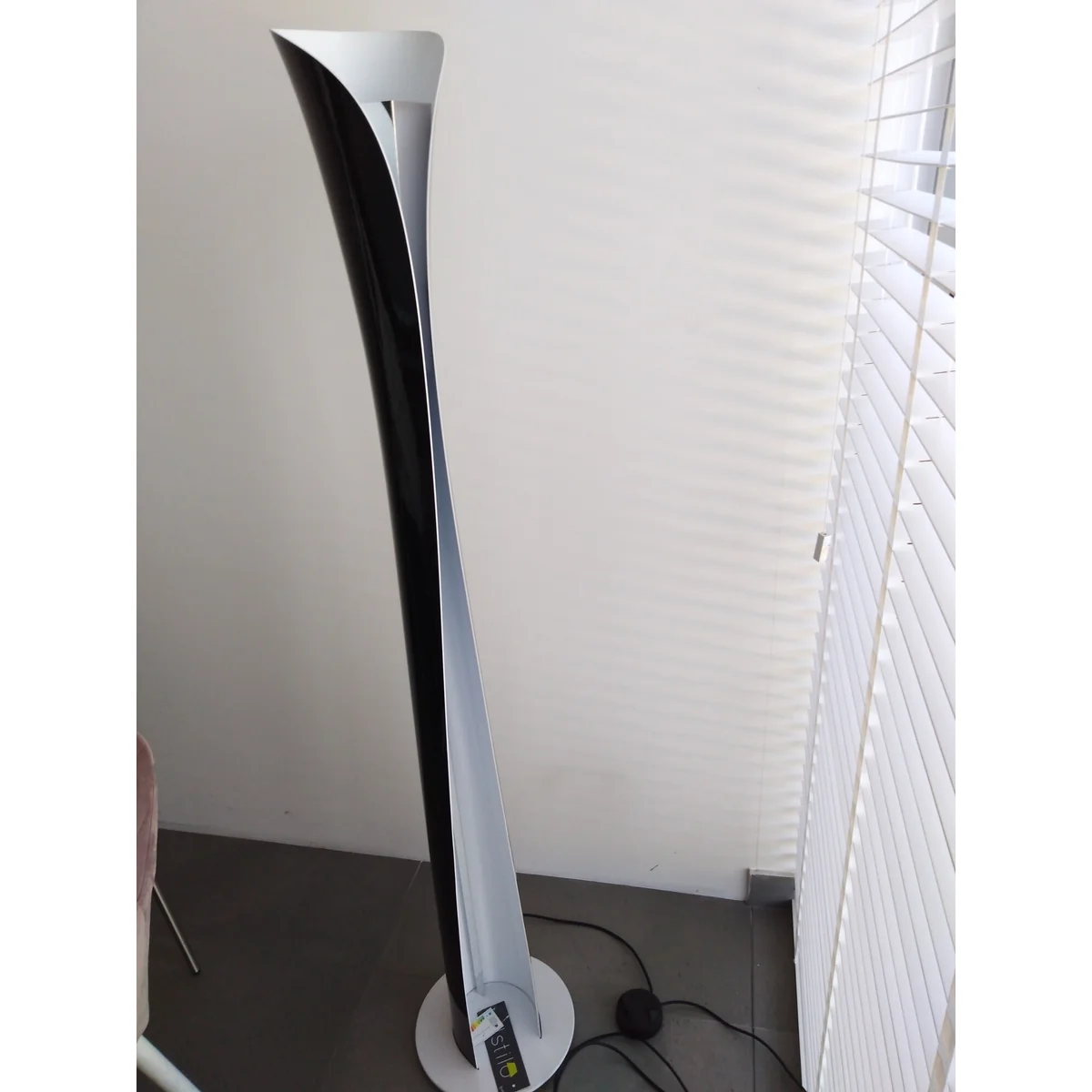 Lampa podłowa wykonanana z malowanego aluminium. Stylowa oprawa, nadająca pomieszczeniu szyku i elegancji