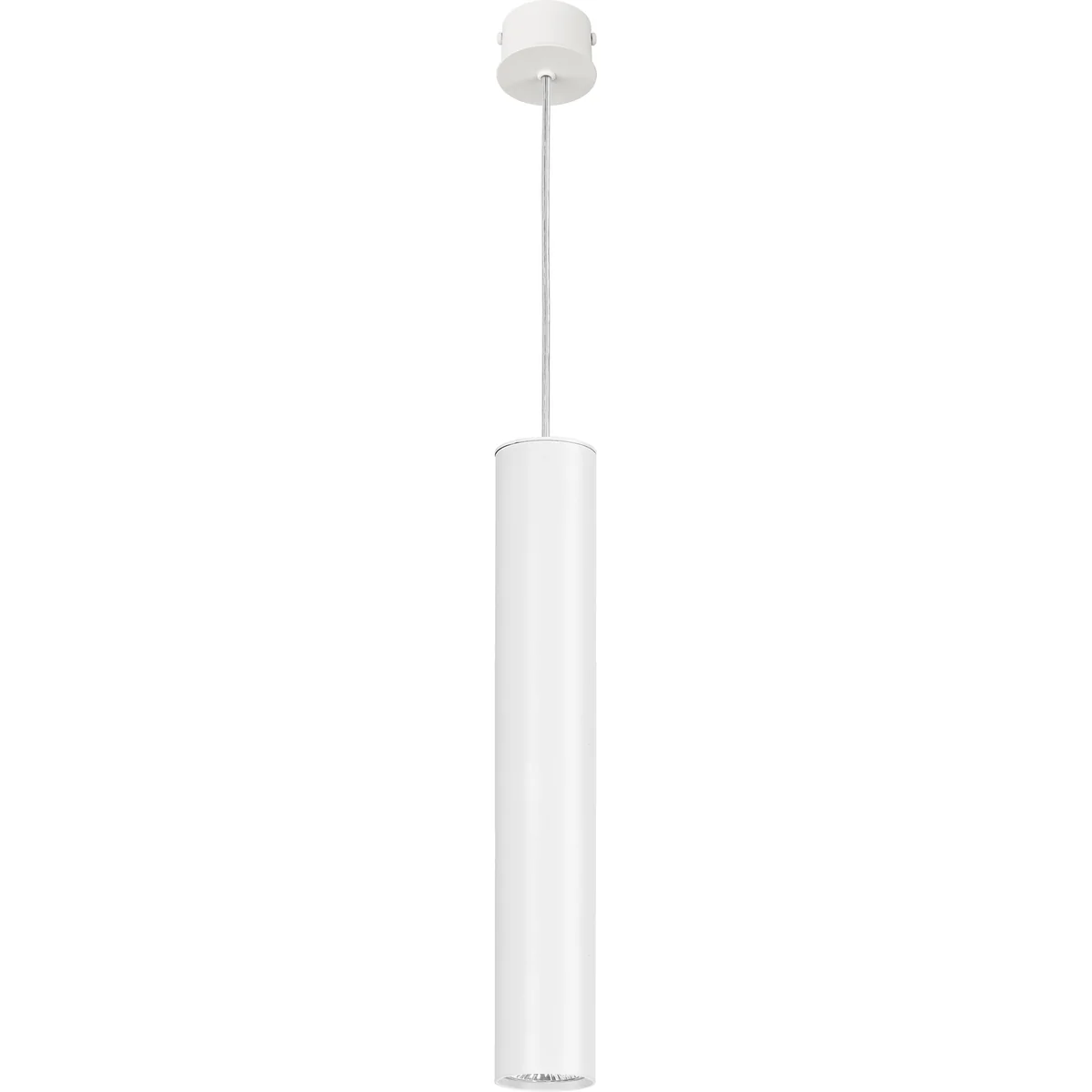 Minimalistyczna lampa wisząca EYE L w kolorze białym. Lampa wykonana jest w formie tuby i idealnie sprawdzi się jako oświetlenie stołu, czy blatu roboczego.