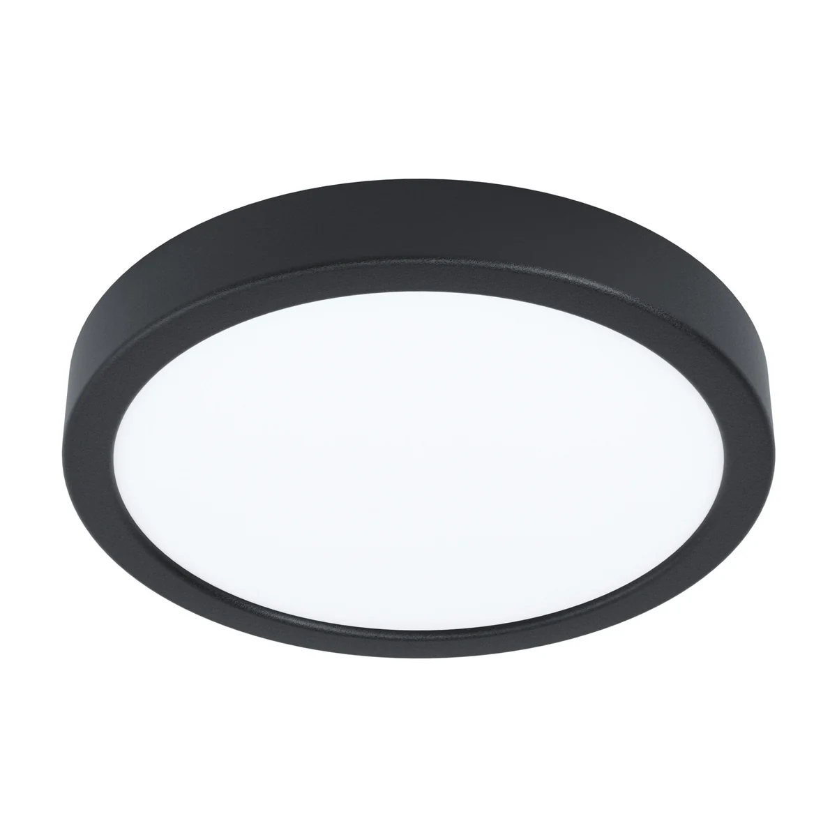 Plafon, lampa ścienna, sufitowa serii FUEVA 5. Obudowa wykonana ze stali w kolorze czarnym. Klosz osłaniający moduł LED wykonany jest białego tworzywa sztucznego, który równomiernie rozprasza światło. Lampa świeci pełną płaszczyzną. Barwa światła to neutralna biel - 4000K.