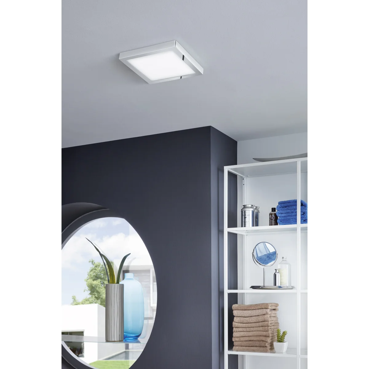 Oprawa do nabudowania z serii FUEVA 1 wykonana jest z chromowanego odlewu metalowego i białego tworzywa sztucznego. Posiada izolację ochronną i stopień ochrony IP44 oraz jest wyposażony w lampę LED zapewniającą ciepłe, białe światło.