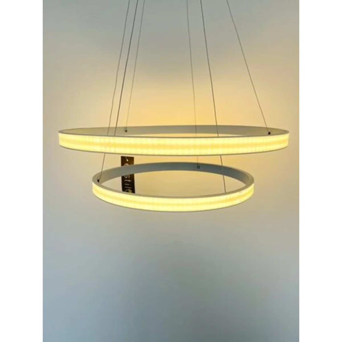 LARGO to lampa wisząca składająca się z dwóch białych okręgów.