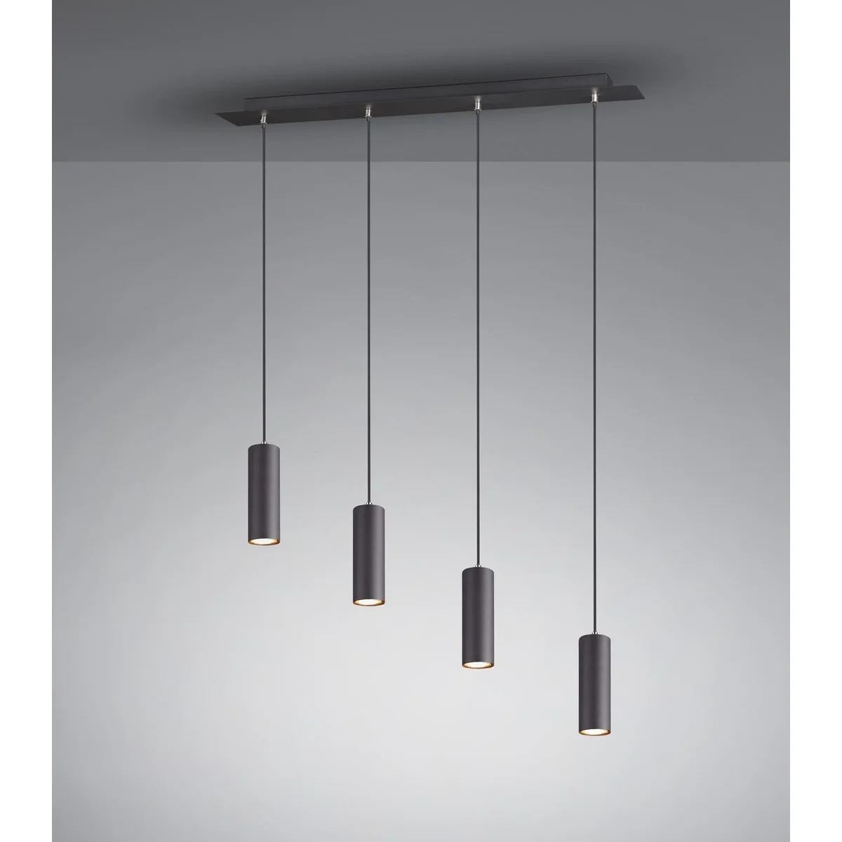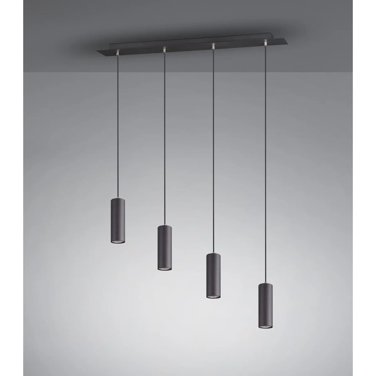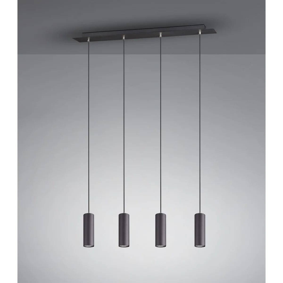 Podczas instalacji długość zawieszenia czterech kloszy można indywidualnie regulować do długości 150 cm. Tuby są zaprojektowane w matowej czerni i dlatego może stylowo uzupełniać i uzupełniać nowoczesne koncepcje kolorystyczne.