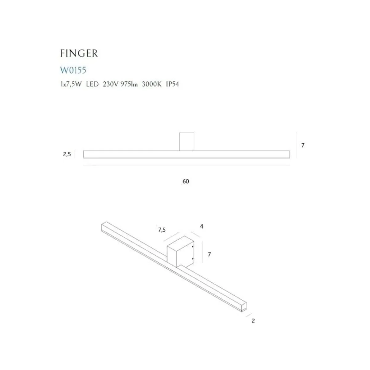 MAXLIGHT W0155 KINKIET FINGER 60 cm BIAŁY IP54 W0155
