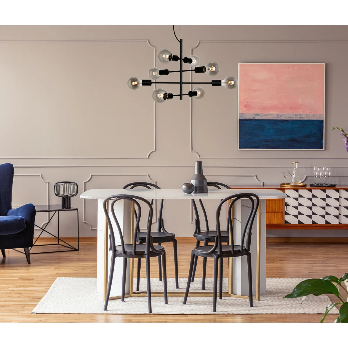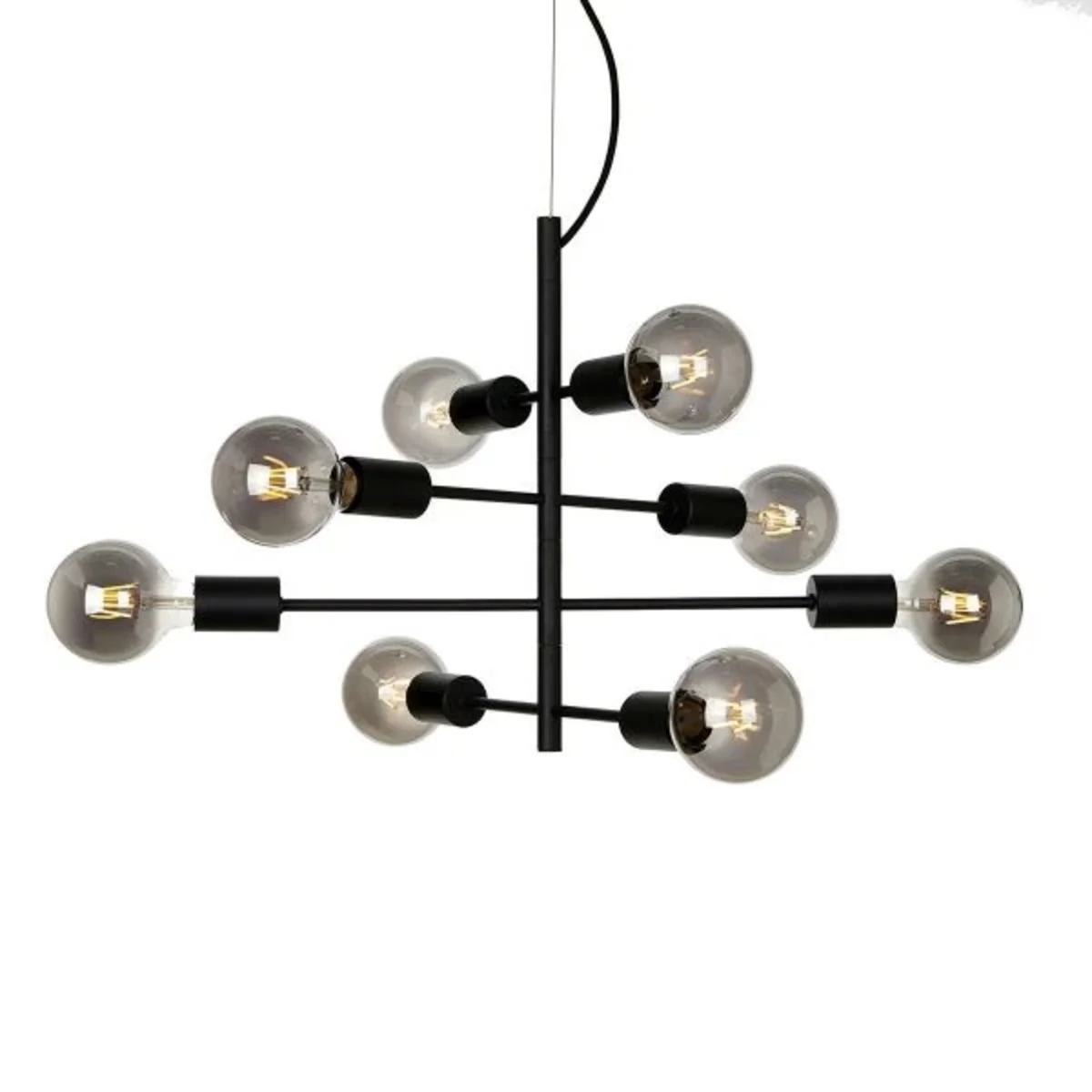 Nowoczesna, stalowa lampa Portel w kolorze czarnym z ośmioma punktami świetlnymi.