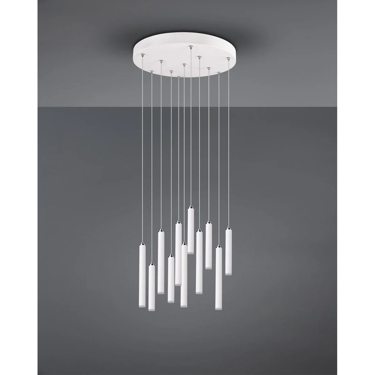 Ta 11-płomieniowa lampa wisząca ma maksymalną wysokość 150 cm. Poszczególne źródła światła różnią się długością od 22 do 36 cm i można je niezależnie od siebie skracać, tworząc indywidualny obraz.