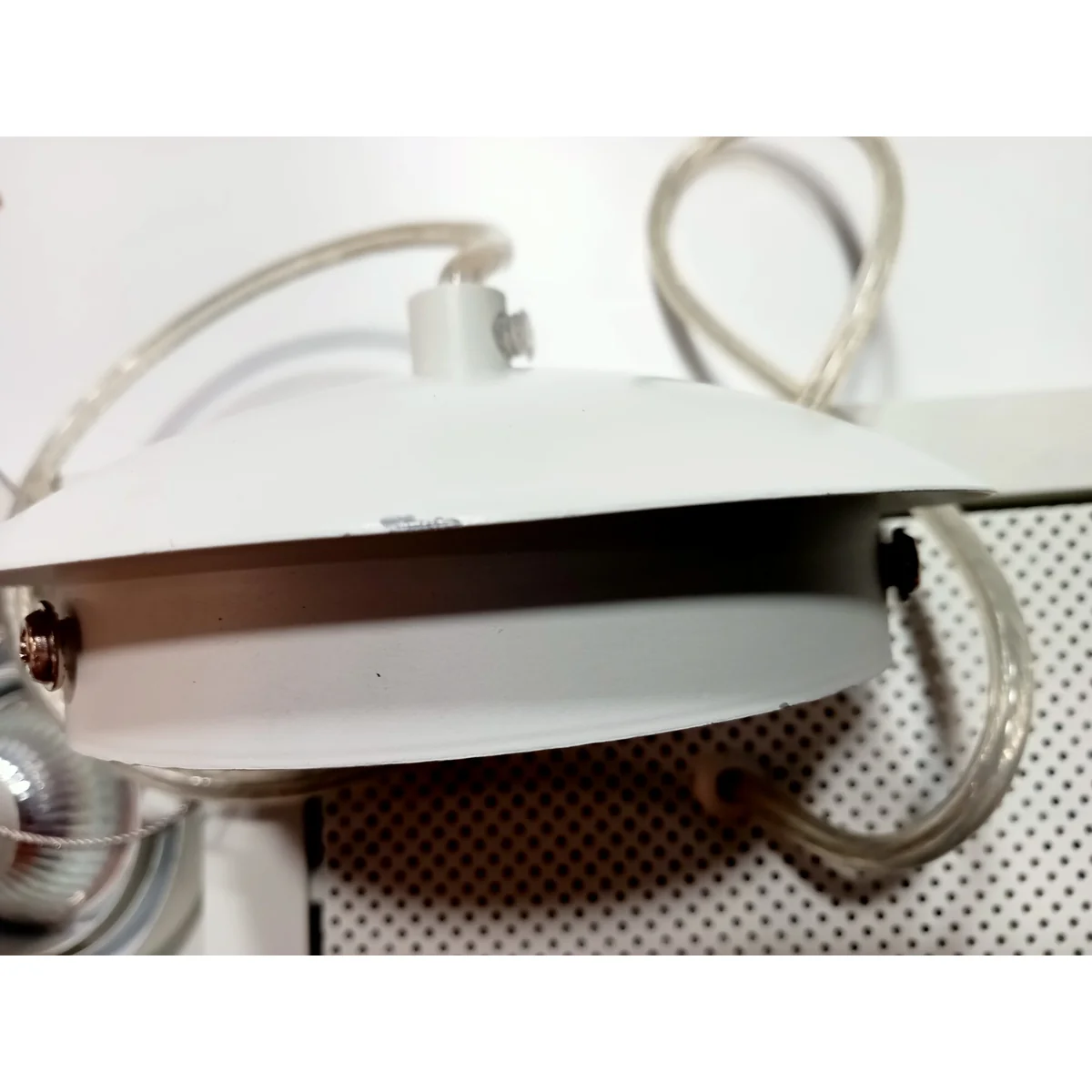 Lampa jest delikatnie porysowana, Odprysła farba w niektórych miejscach, ubytki widoczne na zdjęciach.