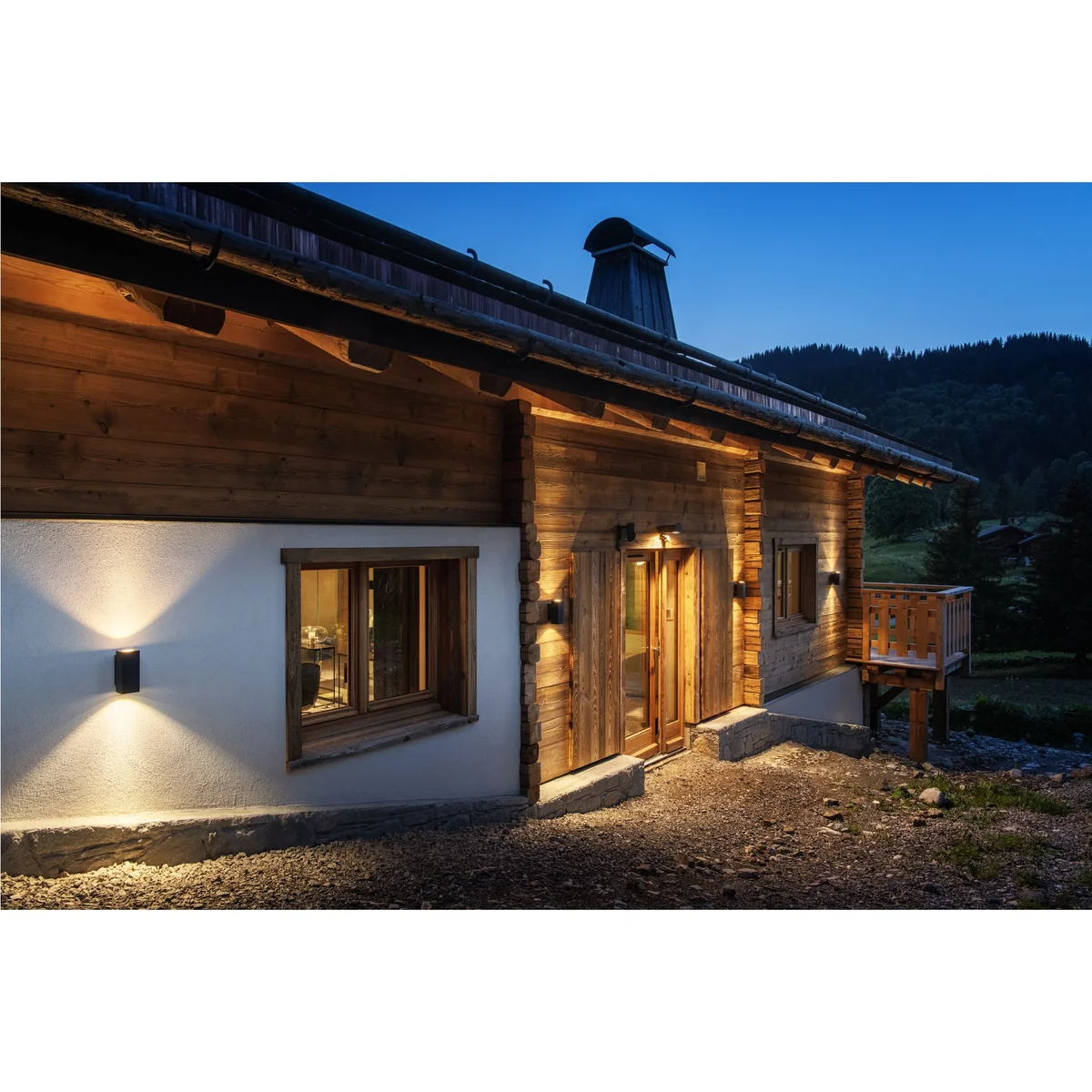 ENOLA to zewnętrzna oprawa ścienna w czarnym kolorze, o klasie szczelności IP65.